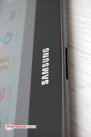 Interessant: Beim Samsung Galaxy Tab 2 10.1 sind links und rechts – wir nehmen stets das Querformat an – keinerlei Tasten oder Schnittstellen angebracht. Ungewollte Fehlbedienungen sind damit zumindest im Querformat ausgeschlossen.