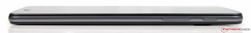 Durch die relativ schmalen seitlichen Displayumrandungen fällt das Gehäuse für ein 7-Zoll-Tablet mit 108,8 Millimetern sehr handlich aus. Auch die Länge von 186,9 Millimetern sowie die Dicke von 8,7 Millimetern (bei der Kamera ca. 10,5 Millimeter) tragen zu einer kompakten Gesamterscheinung bei. Nimmt man das Gerät in die Hand, wird dieser Eindruck zusätzlich durch das mit 283 Gramm recht niedrig ausfallende Gewicht bestätigt.