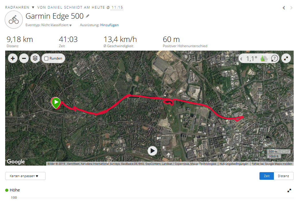 In der Praxis zeigt sich bei einer Vergleichsfahrt mit dem Galaxy Tab A 8.0 (2019) eine unproblematische Gesamtabweichung von rund 60 Metern gegenüber dem Fahrradcomputer Garmin Edge 500. Allerdings ist aus den Aufzeichnungen ersichtlich, dass der Streckenverlauf deutlich begradigt wird, was auf einen zeitweise unterbrochenen Satellitenkontakt schließen lässt.