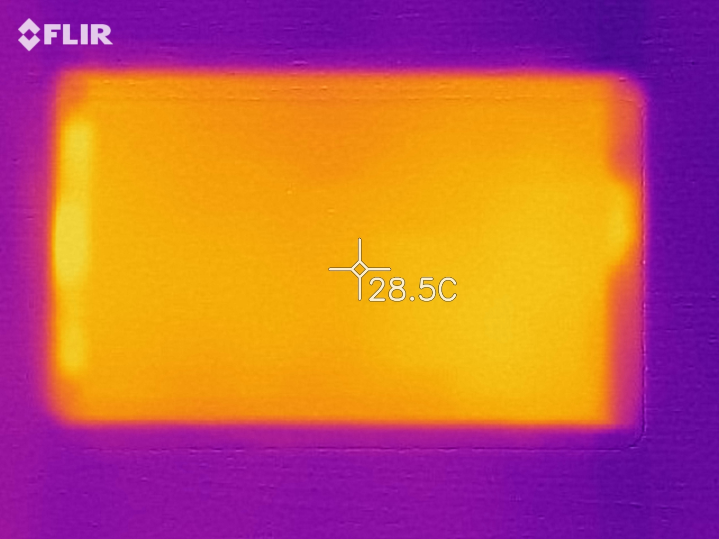 (+) Ohne Last messen wir eine durchschnittliche Temperatur von 27.3 °C auf der Oberseite. Der Klassendurchschnitt erreicht 30 °C.