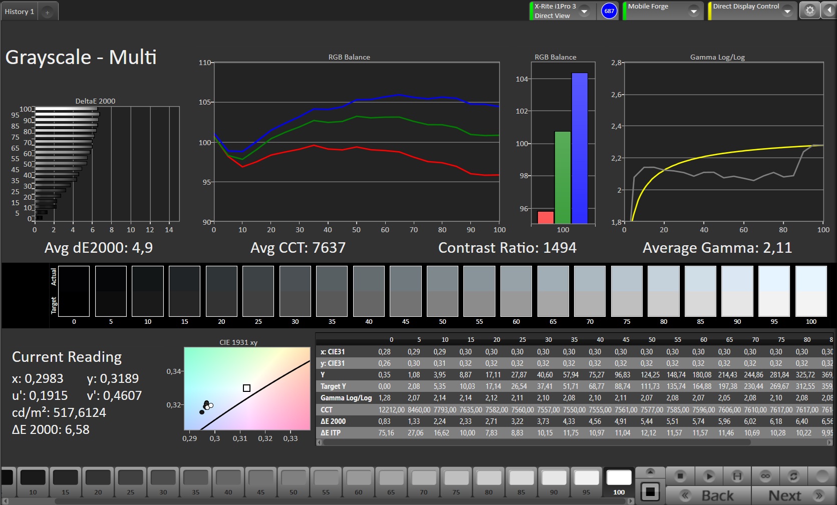 ΔE Greyscale Calman: 4.9 | ∀{0.09-98 Ø5}