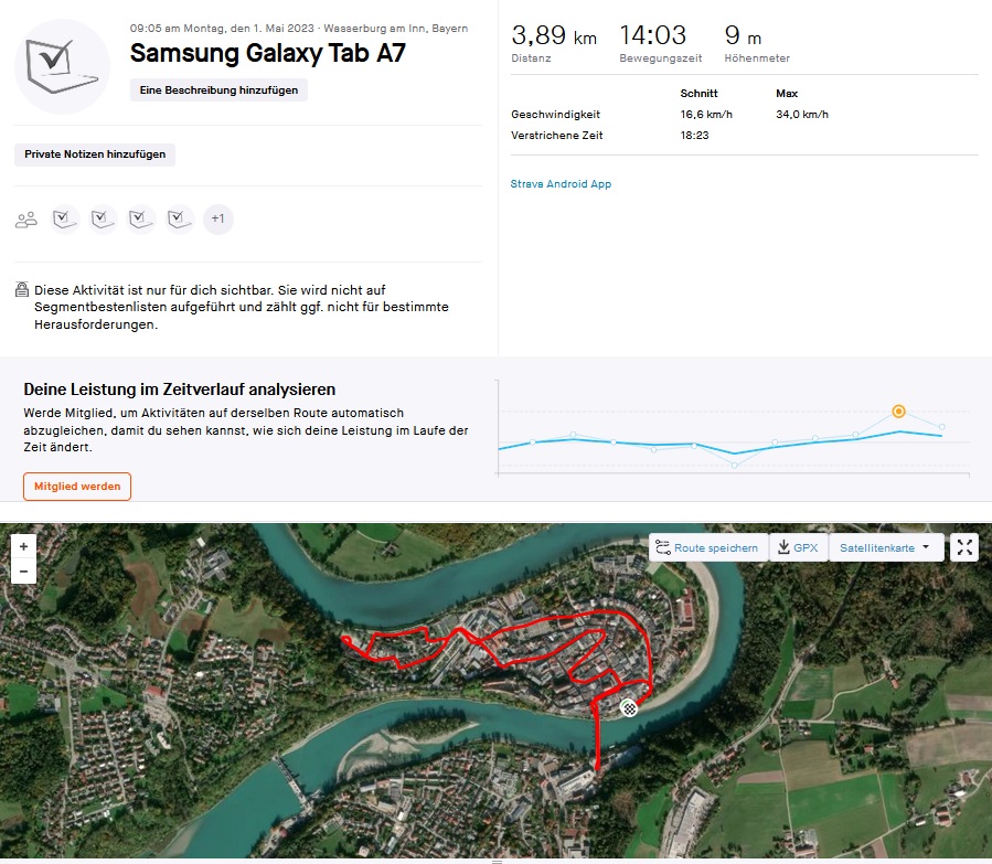 Das Ergebnis wird Nutzer, die auf hohe Präzision wert legen kaum überzeugen, ist aber für ein grobes Nachvollziehen des Wegs ausreichend: Das Tablet nimmt öfter mal Abkürzungen durch Häuserblocks, statt den tatsächlich gefahrenen Weg nachzuvollziehen oder liegt mit seiner Positionsbestimmung neben der eigentlichen Route.