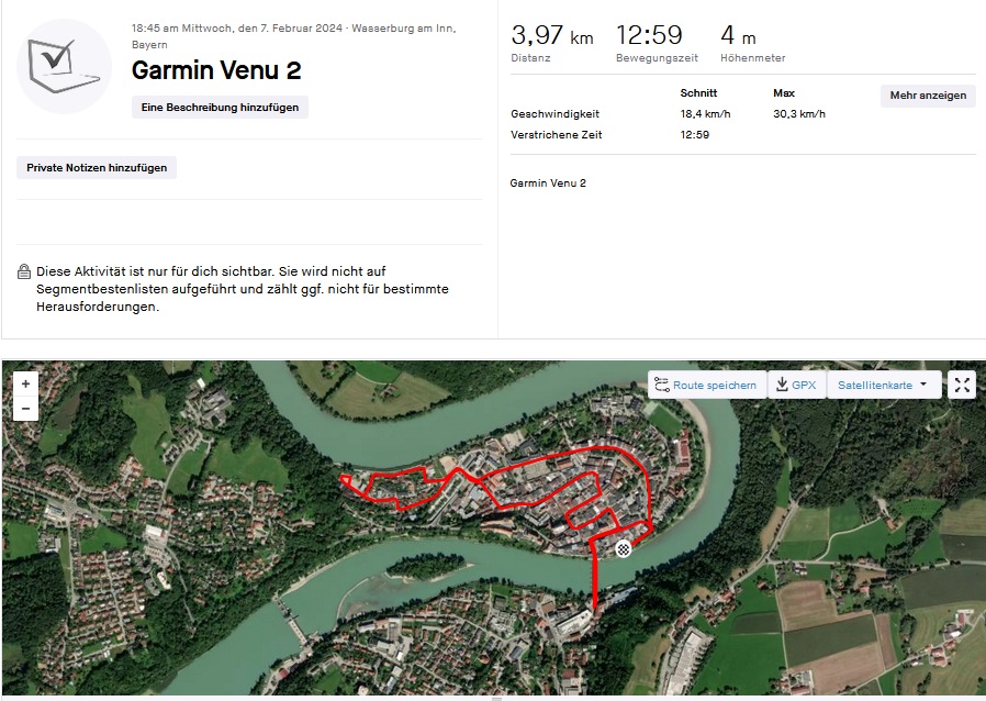 Wir starten unseren Praxistest mit einer Fahrradrunde und der Smartwatch Garmin Venu 2 als Vergleichsgerät. Dabei fällt auf, dass das Galaxy Tab Active5 kein ausgesprochener Ortungsexperte ist: Zwar wird die Strecke im Großen und Ganzen ungefähr nachverfolgt, allerdings liegt die gezeichnete Strecke oft neben der eigentlich gefahrenen Route. Wer nur ungefähre Positionsangeben braucht, für den wird das Tablet ausreichen. Wer aber höhere Ansprüche an die Navigationsfähigkeiten seines Gerätes hat, der muss sich anderweitig umsehen.