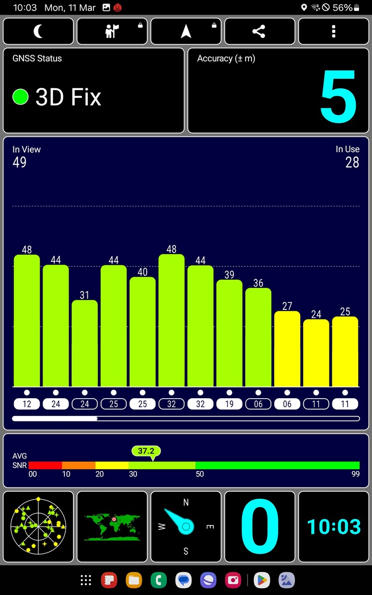 Tritt man mit dem Tablet ins Freie, so wird man nach ein paar Sekunden auf bis zu fünf Meter genau geortet. Eine ordentliche Genauigkeit. Alle großen Satellitennetzwerke werden unterstützt, SBAS für eine noch höhere Genauigkeit kann alllerdings nicht genutzt werden.