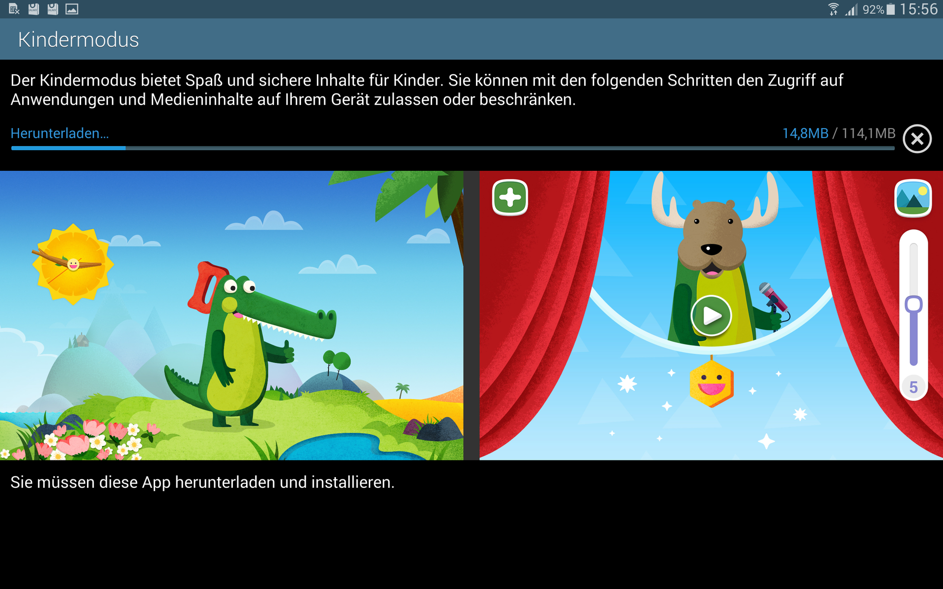 Unser Testgerät besitzt jedoch auch ein LTE-Modem. Dieses greift auf eine breite Frequenzabdeckung zurück und unterstützt auch HSPA+ bis zu einer Downloadgeschwindigkeit von 42 MBit/s. Mit dem schnellen Datenstandard LTE können bis zu 150 MBit/s im Down- und 50 MBit/s im Upload erreicht werden. Wer noch das letzte bisschen Geschwindigkeit aus dem Tablet herauskitzeln möchte, kann den sogenannte Download Booster aktivieren. Dieser bündelt die Leistung des WLANs mit der mobilen Datenverbindung, um Dateien, welche größer als 30 MB sind, schneller herunterzuladen.