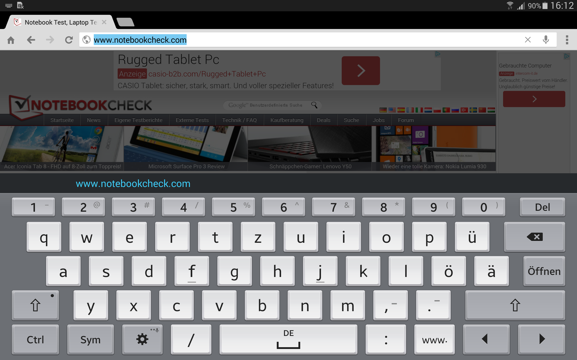 Die virtuelle Tastatur ist ebenfalls gut durchdacht und eignet sich vergleichsweise prima zum Schreiben. Ein nettes Feature ist, dass sie sich vom Rand als verkleinerte Version lösen lässt, um so weniger vom Inhalt zu verdecken. Als Tastenfeedback lassen sich sowohl Ton als auch Vibration einstellen. Die Ergänzung durch eine Stifteingabe, wie im Galaxy Note 10.1, findet sich im Tab S nicht. Auch die entsprechenden Apps sind nicht vorinstalliert.