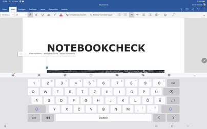 Die Metall-Kontakte an der unteren Längsseite dienen wieder als Verbindung für optionale Tastatur-Cover.