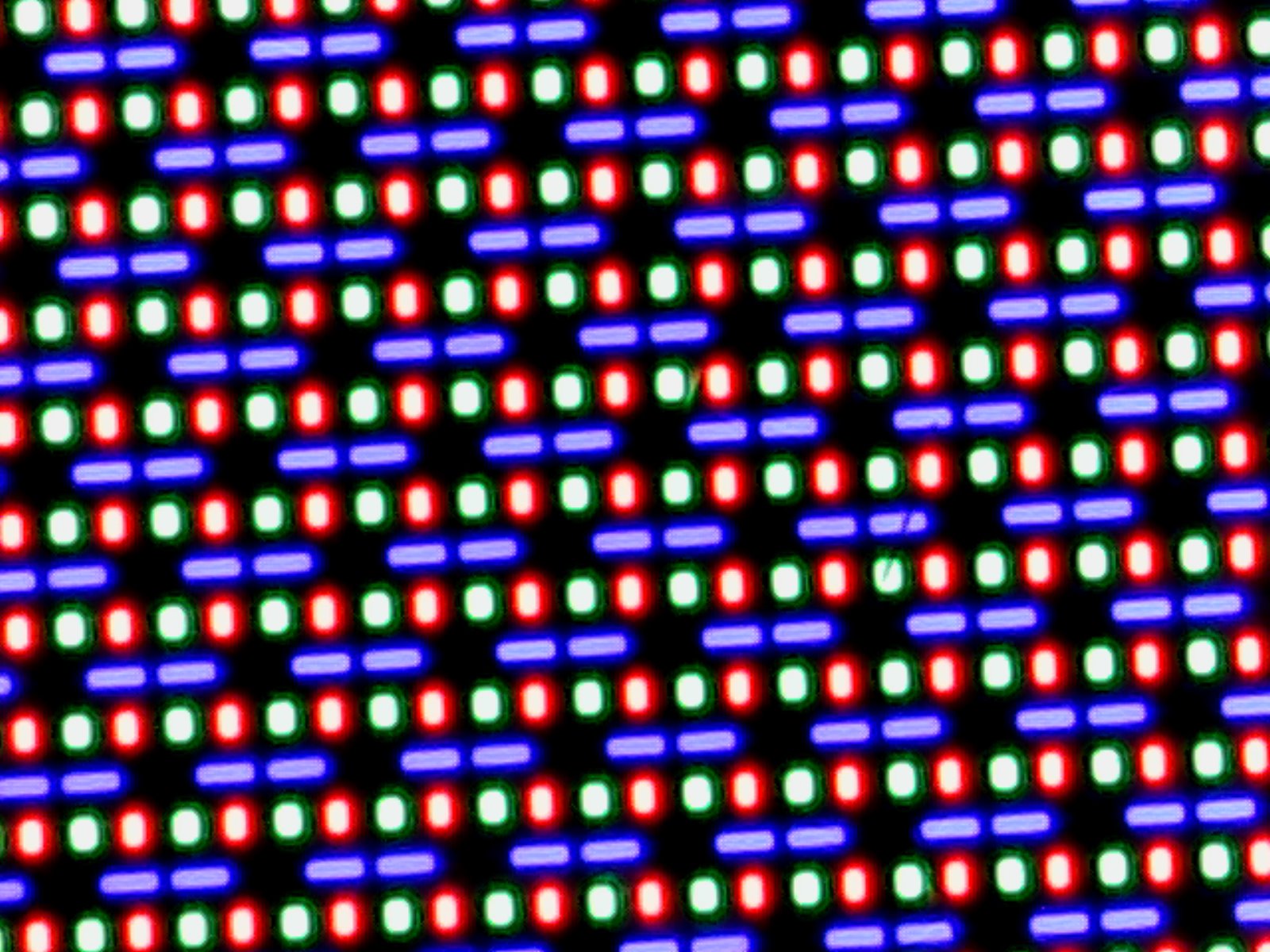 Der Formfaktor des Super-AMOLED-Displays im Galaxy Tab S4 hat sich gegenüber dem Vorgänger (4:3, 9,7 Zoll) verändert. So kommt nun durch die geschrumpften Displayränder ein 10,5 Zoll messendes Panel zum Einsatz, welches ein 16:10-Seitenverhältnis besitzt. Die Subpixelmatrix ist jedoch identisch mit der des Tab S3. Bei der Auflösung legt das S4 jedoch ein wenig zu und bietet nun 2.560 x 1.600 Bildpunkte, was zu einer leicht höheren Pixeldichte von 288 PPI führt. Da der Betrachtungsabstand bei Tablets etwas größer ist als bei Smartphones, sorgt dies für eine scharfe Darstellung der Inhalte.