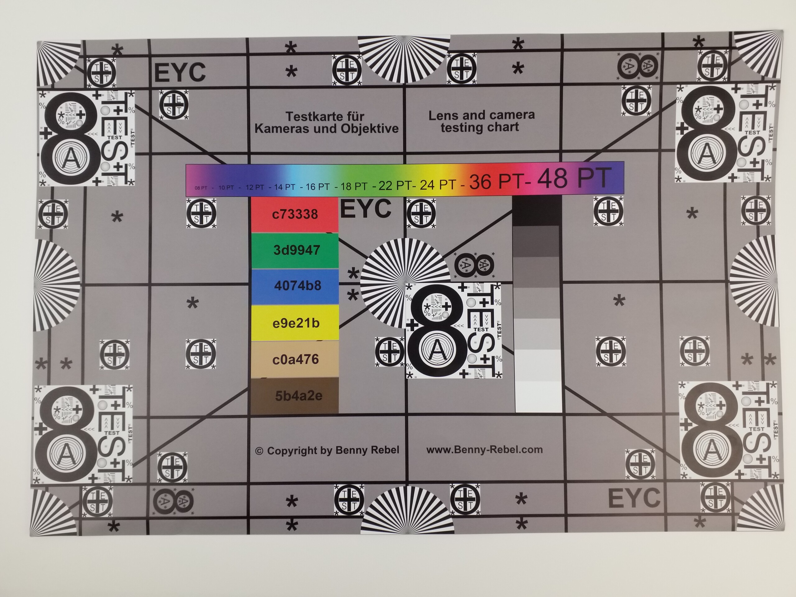 Bei unserem Testchart schwächelt der Sensor jedoch abermals. Selbst in der Bildmitte werden feine Details kaum noch erfasst und die Kantenzeichnung wird zum Bildrand hin immer ausgefranster.