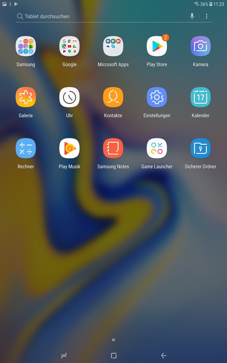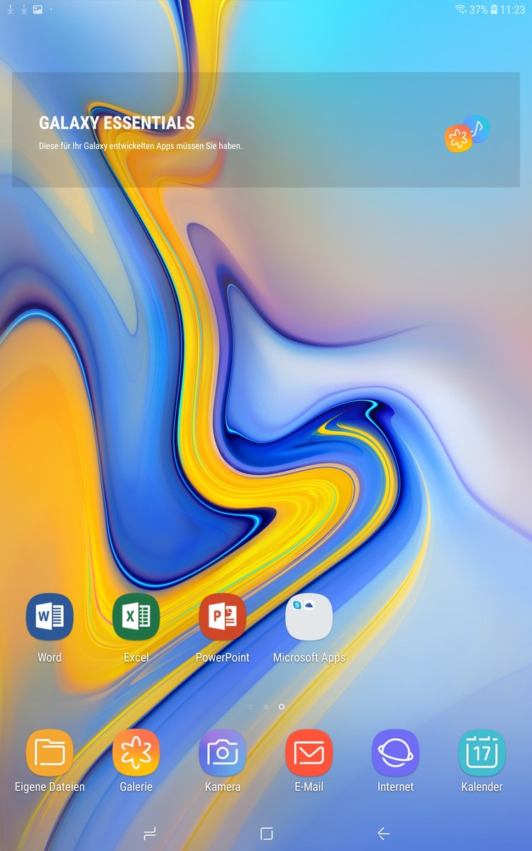 Samsung installiert eine ganze Palette an eigenen Apps plus dem Galaxy-App-Store vor, die Drittanbieter-Apps beschränken sich jedoch auf ein paar Anwendungen von Microsoft, welche sich in den Einstellungen aber deaktivieren lassen. Die Benutzerkonten-Verwaltung ist ebenfalls aktiv.
