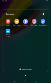 Bei der Softwareausstattung beschränkt sich Samsung auf das Wesentliche. Vorinstalliert sind neben den Google-Apps lediglich Microsoft OneDrive sowie eine Handvoll Samsung-Anwendungen, darunter ein Dateibrowser sowie der herstellereigene App Store Galaxy Apps. Dazu kommt Bixby Home: Wischt man auf dem Startbildschirm nach rechts, zeigt dieser Dienst eine Zusammenstellung von Nachrichten, App-Inhalten, Terminen, Wetter und Aktivitäten an.