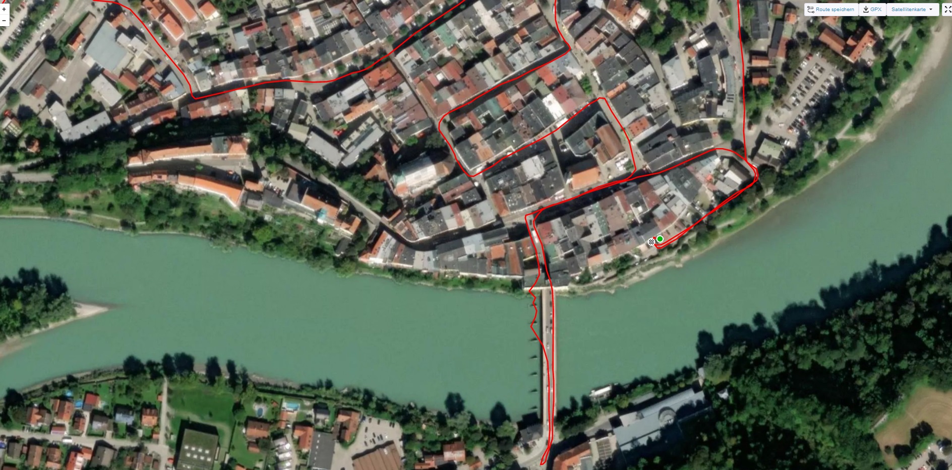 Unsere Position wird mit dem Galaxy Tab S6 Lite (2024) zwar nicht immer perfekt wiedergeben, die Abweichungen zur Wegstrecke sind aber als gering einzustufen. Die zu Vergleichszwecken genutzte Garmin Venu 2 liefert größtenteils sehr ähnliche Ergebnisse wie das Samsung-Tablet.