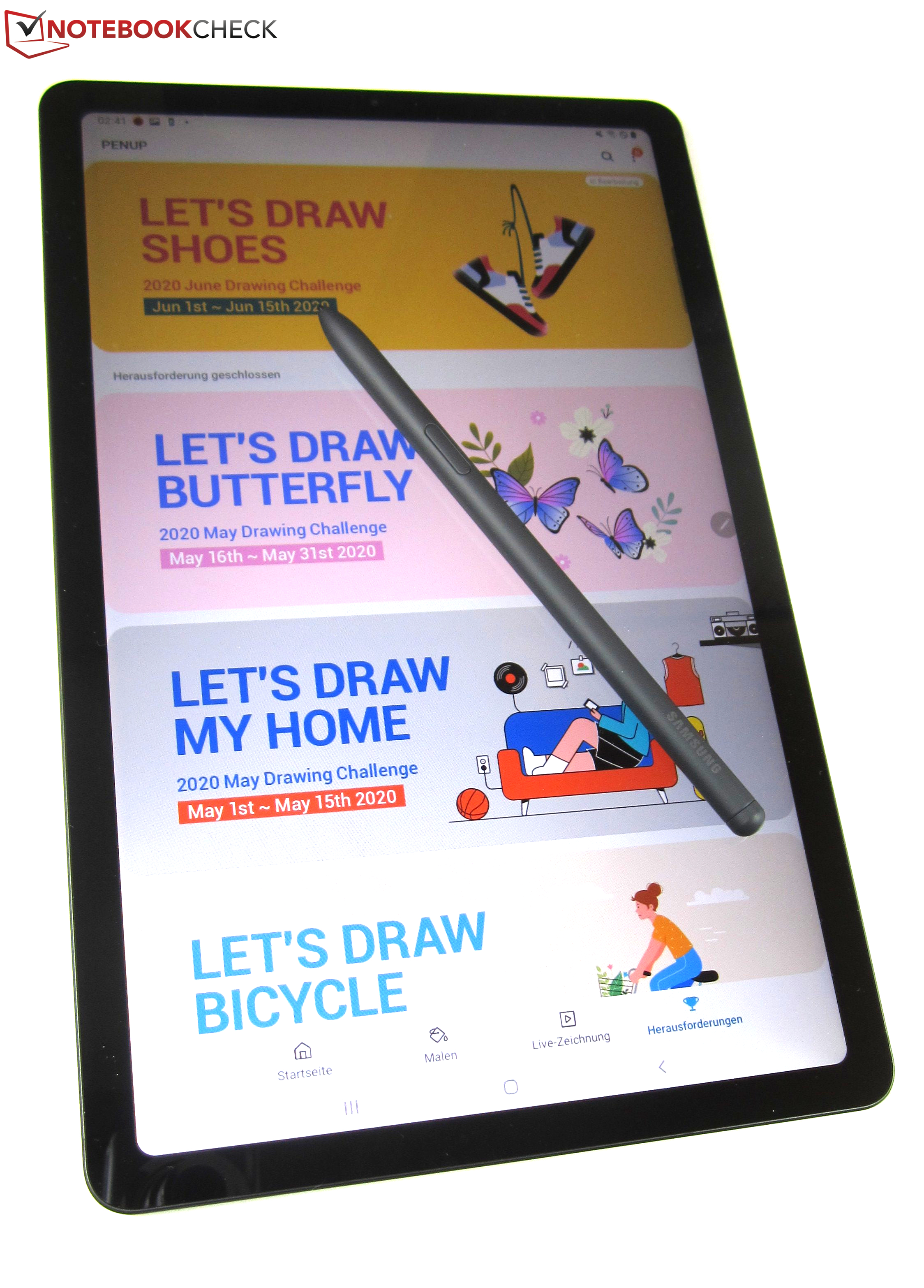 Der mitgelieferte S Pen kann ebenfalls zum Navigieren durch Menüs verwendet werden und hilft nebenbei auch, Fingerabdrücke auf dem Display zu vermeiden. Zudem unterstützt er 4096 Druckstufen und erlaubt es so, sehr feine Zeichnungen und Skizzen zu erstellen. Wer mit dem S-Pen loslegen will, aber nicht so recht weiß, wie, dem helfen die vorinstallierten Apps PenUp und Notes. PenUp bietet diverse Motive und Vorlagen zum Aus- und Nachmalen, während Notes als digitaler Notizblock dient. Bluetooth unterstützt der S Pen des Galaxy Tab S6 Lite nicht und damit auch keine Gestensteuerung.