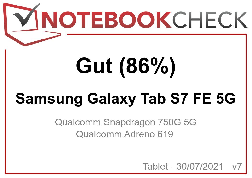 Im Gegensatz zu den Oberklasse-Tablets der Tab-S7-Generation kommt im FE-Modell nur ein Qualcomm Snapdragon 750G zum Einsatz – das "G" in der Bezeichnung zielt auf spezielle Gaming-Treiber ab. Der im 8-nm-Prozess gefertigte Mittelklasse-SoC integriert acht Kerne, aufgeteilt in zwei Cluster. Als Grafikkarte ist eine Qualcomm Adreno 619 verbaut.