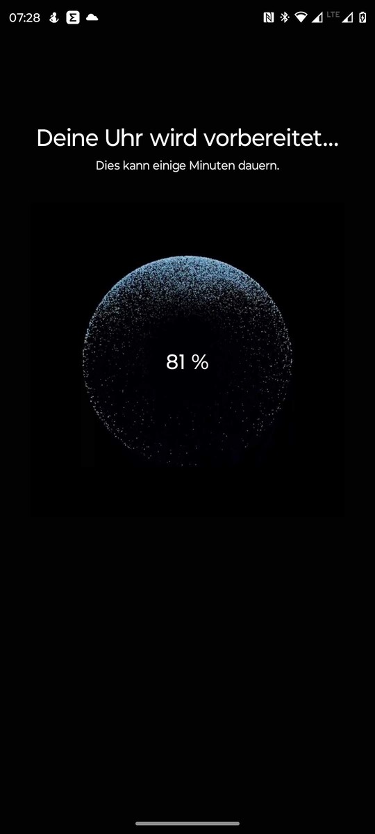 Die Smartwatch passt die Ausrichtung des Displays beim Laden an, praktisch am Schreib- oder Nachttisch. Außerdem gibt die Software die erwartete Ladezeit an, der Wert schwankt allerdings.