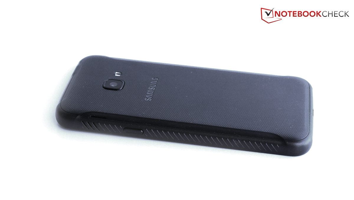 Das Gehäuse ist nur in unempfindlichem Schwarz zu haben und soll durch die gummierte Oberfläche und starke Strukturen besonders griffig sein. Dem ist auch tatsächlich so: Durch die abgerundeten Ecken liegt das Smartphone zudem sehr gut in der Hand. Das Galaxy XCover 4 wirkt auch nicht klobig und stellt seine Schutzeigenschaften nicht zur Schau. Auf den ersten Blick sieht man dem Smartphone seine robuste Natur also nicht an. Der Bildschirm ist durch einen minimal vorstehenden Gehäuserand und die Hardwarebuttons unterhalb ein wenig geschützt, nach unseren Sturzerfahrungen mit dem Galaxy XCover 3 würden wir aber davon abraten, das Gerät aus größerer Höhe fallen zu lassen.