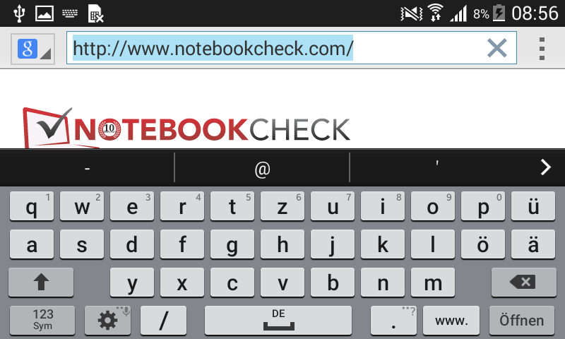 Die Tasten sind durch den relativ kleinen 4,5-Zoll-Bildschirm recht klein, vor allem im Hochkantmodus. Dennoch lässt es sich einigermaßen zuverlässig schreiben, da Samsung zwischen den einzelnen Keys großen Abstand lässt.