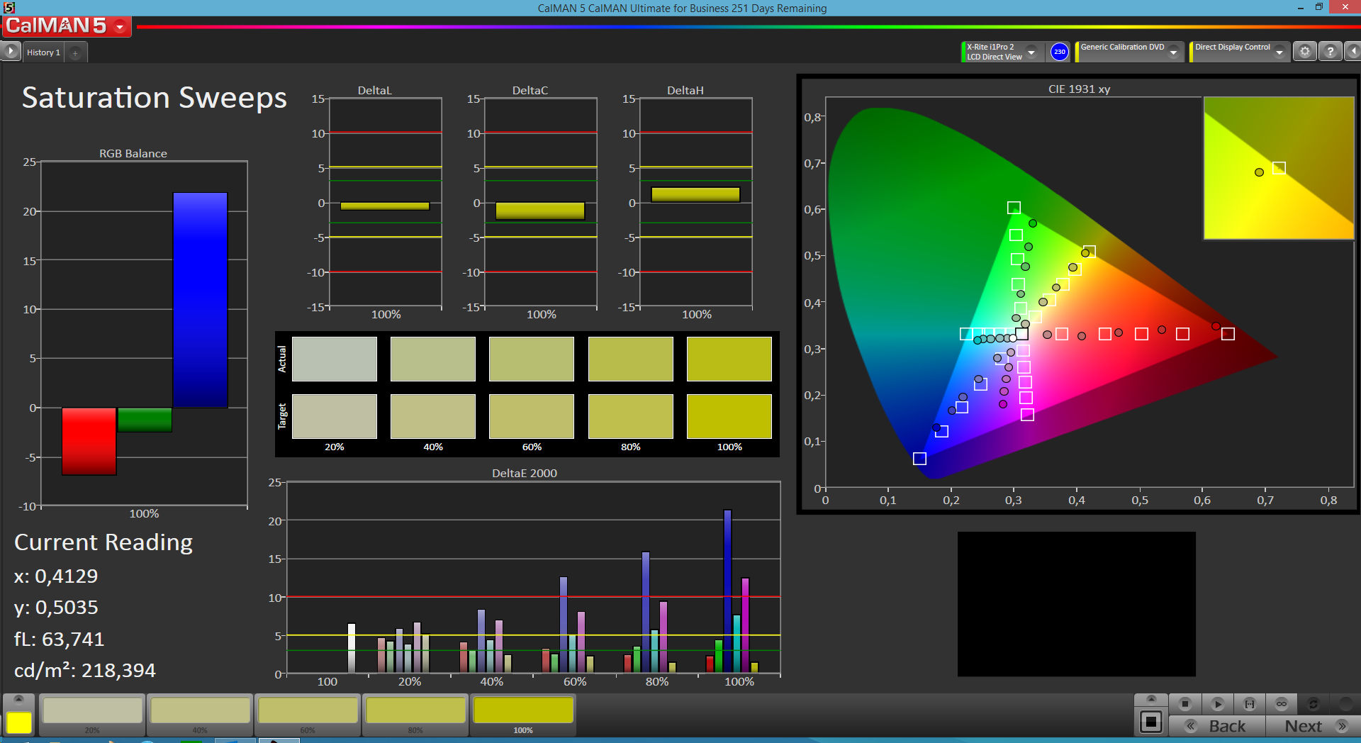 | Delta E Graustufen * | 5.02 | 8.92 -78% | 5.52 -10% | 9.88 -97% | |