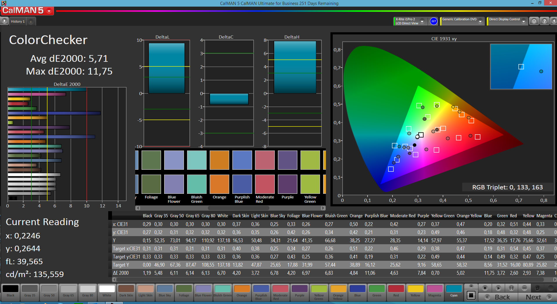 | Delta E Colorchecker * | 5.71 | 9.07 -59% | 6.18 -8% | 8.54 -50% | |