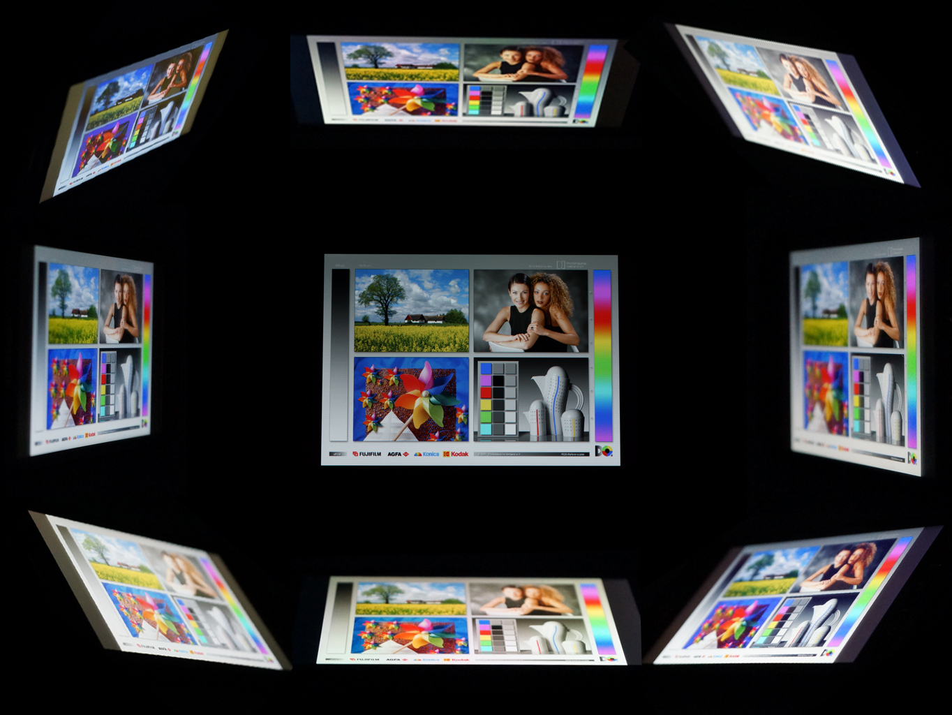 | Helligkeit Bildmitte (cd/m²) | 452 | 723 60% | 334 -26% | 288 -36% | 513 13% |