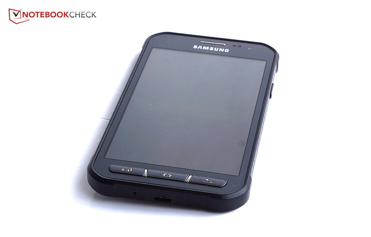 Das klassische Galaxy-Design ist auch beim Xcover 3 erhalten geblieben. Dazu gehört der langgezogene Ohrhörer oberhalb des Bildschirms, die abgerundeten Ecken und der Lautsprecher an der Rückseite. Obwohl das Gerät staub- und wasserdicht ist, lässt sich der Akku entnehmen, allerdings sitzt die Rückseite deutlich fester auf dem Gerät als bei anderen Galaxy-Smartphones, so dass es etwas mehr Kraft braucht, um sie abzunehmen.