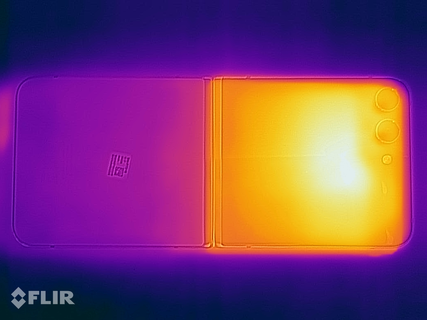Unter Last kann das Samsung Galaxy Z Flip5 sehr heiß werden, was insbesondere an warmen Tagen problematisch sein kann. Die Werte sind nicht mit denen des Vorgängers vergleichbar, da wir mittlerweile den anspruchsvollen Burnout Benchmark nutzen und nicht mehr den Stability Test.