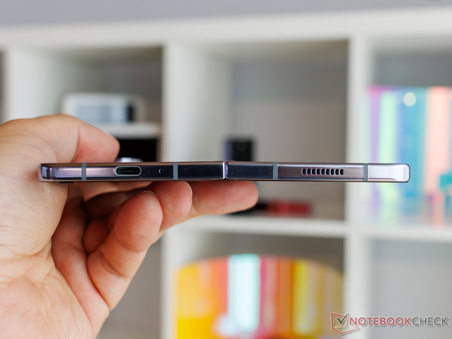 Die Verarbeitungsqualität ist auf einem sehr hohen Niveau und die kantige Haptik beim Übergang zwischen dem Scharnier und dem Glaselementen wurde im Vergleich zum Fold4 deutlich verbessert. Die Under-Display-Kamera (UDC) des Galaxy Z Fold5 besitzt nun mehr Subpixel in der Displaymatrix als bei der Vorgänger-Generation, dennoch ist das Mosaik-Muster bei genauer Betrachtung immer noch sichtbar. Jedoch selbst bei weißen Hintergründen macht sich der Bereich der UDC mit seinen ausgedünnten Subpixeln nicht mehr so störend bemerkbar.