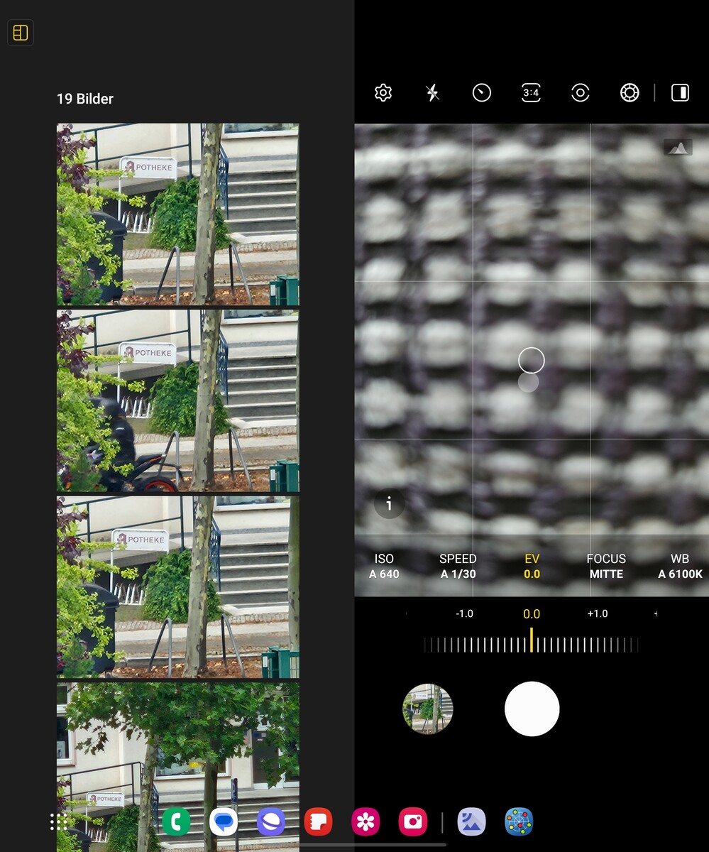 Unter dem Hauptdisplay versteckt Samsung wieder eine Under-Display-Kamera mit 4 MP. Durch die Multi-Frame-Synthese-Technologie und KI-basierter Algorithmen möchte der Hersteller die Schärfe in den Aufnahmen im Vergleich zum Vorgänger verbessern, was wir anhand unser Testfotos mit dem Galaxy Z Fold5 auch bestätigen können. Dennoch liefert die 10-MP-Punch-Hole-Optik des Außendisplays weiterhin die klar ausgewogeneren Ergebnisse. Wer allerdings einen passenden Ablageort für das Foldable parat hat, sollte im aufgeklappten Zustand die Hauptkamera und das Frontpanel als Sucher nehmen.