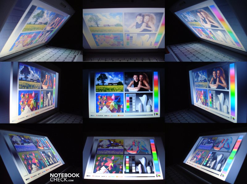 Die Blickwinkel des Panels sind netbooktypisch vertikal früher und stärker Veränderungen unterworfen als horizontal. Farben bleichen beim Blick von oben aus und invertieren bei Blickwinkeln aus dem unteren Bereich.