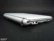 Die in dem Displayrahmen links und rechts untergebrachten Lautsprecher, werden durch einen Subwoofer im Unterboden unterstützt. Dies führt zu deutlich mehr Mitten und Bässen bei der Soundausgabe, die für Netbookverhältnisse schon recht passabel und ausgewogen daherkommt. Hier kann man deutlich länger und öfter auf zusätzliche USB-Lautsprecher oder Ohrhörer verzichten. Audiophile Genußmenschen werden dennoch kaum glücklich und müssen zum Ausreizen des HD-Soundchips wie gehabt auf externe Lösungen setzen.