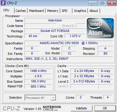 Bei einem aktuellen Netbook sollte die Hardware nicht veraltet sein und Samsung setzt auf den neuen Intel Atom N550 Dual-Core-Prozessor mit 2x 1,5 GHz und 1 MByte L2-Cache. Neben der gesteigerten Office-Leistung stimmt auch die Verlustleistung (TDP) von nur 8,5 Watt inklusive Grafikeinheit. Die älteren Single-Core-Modelle Intel Atom N450 und N455 haben im Vergleich eine um 3 Watt niedrige Thermal Design Power.