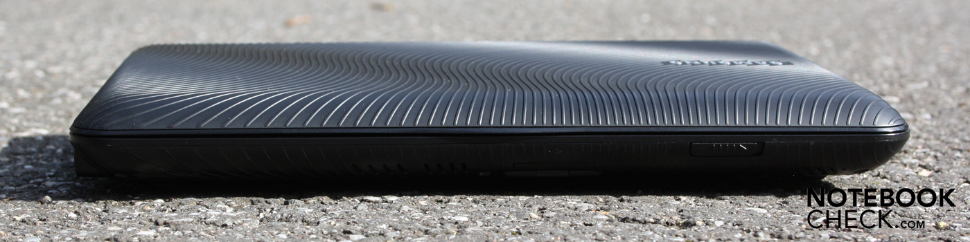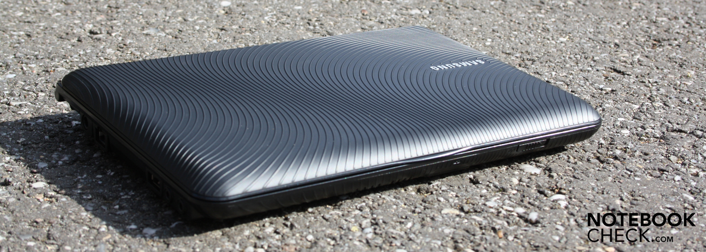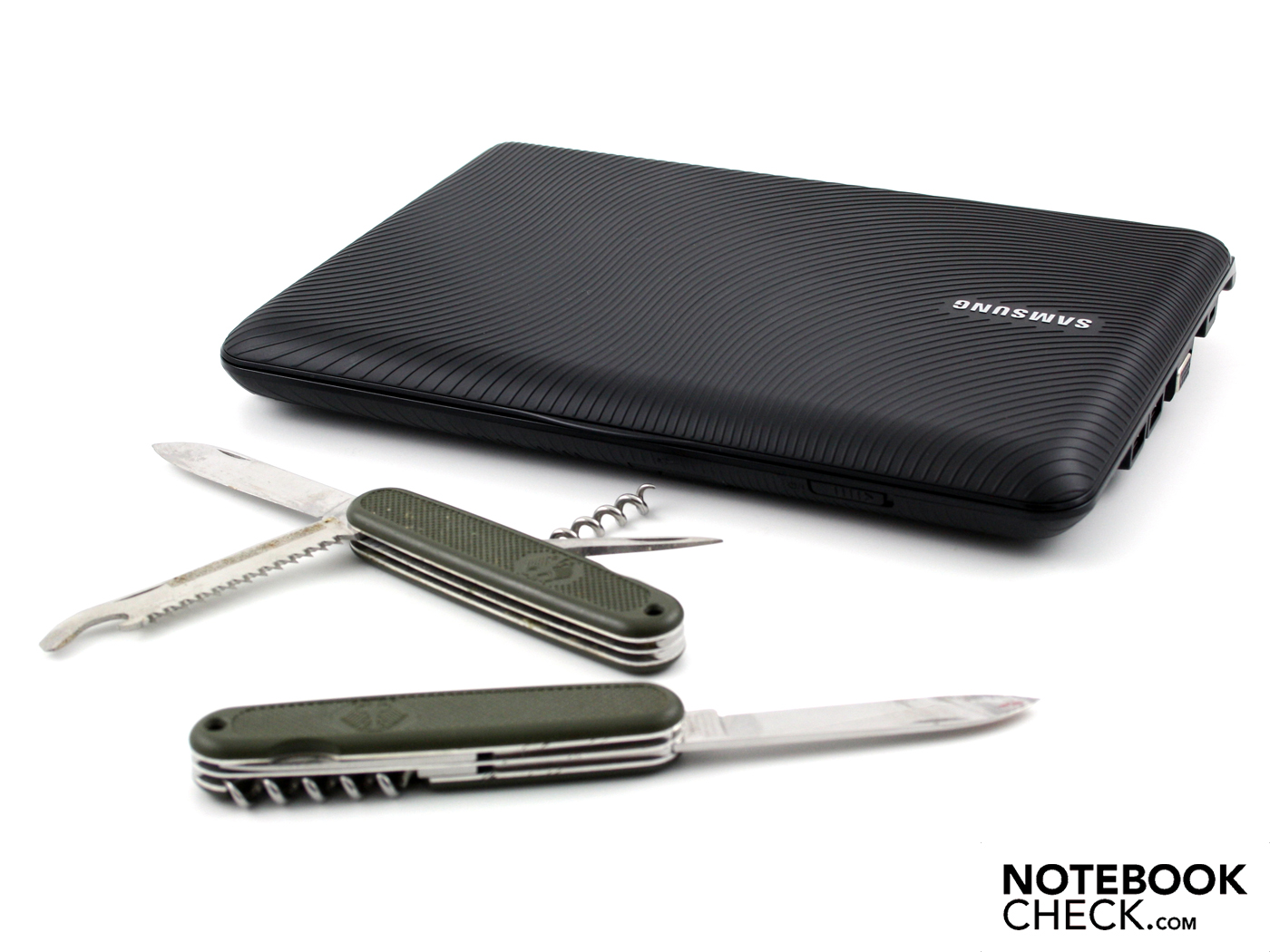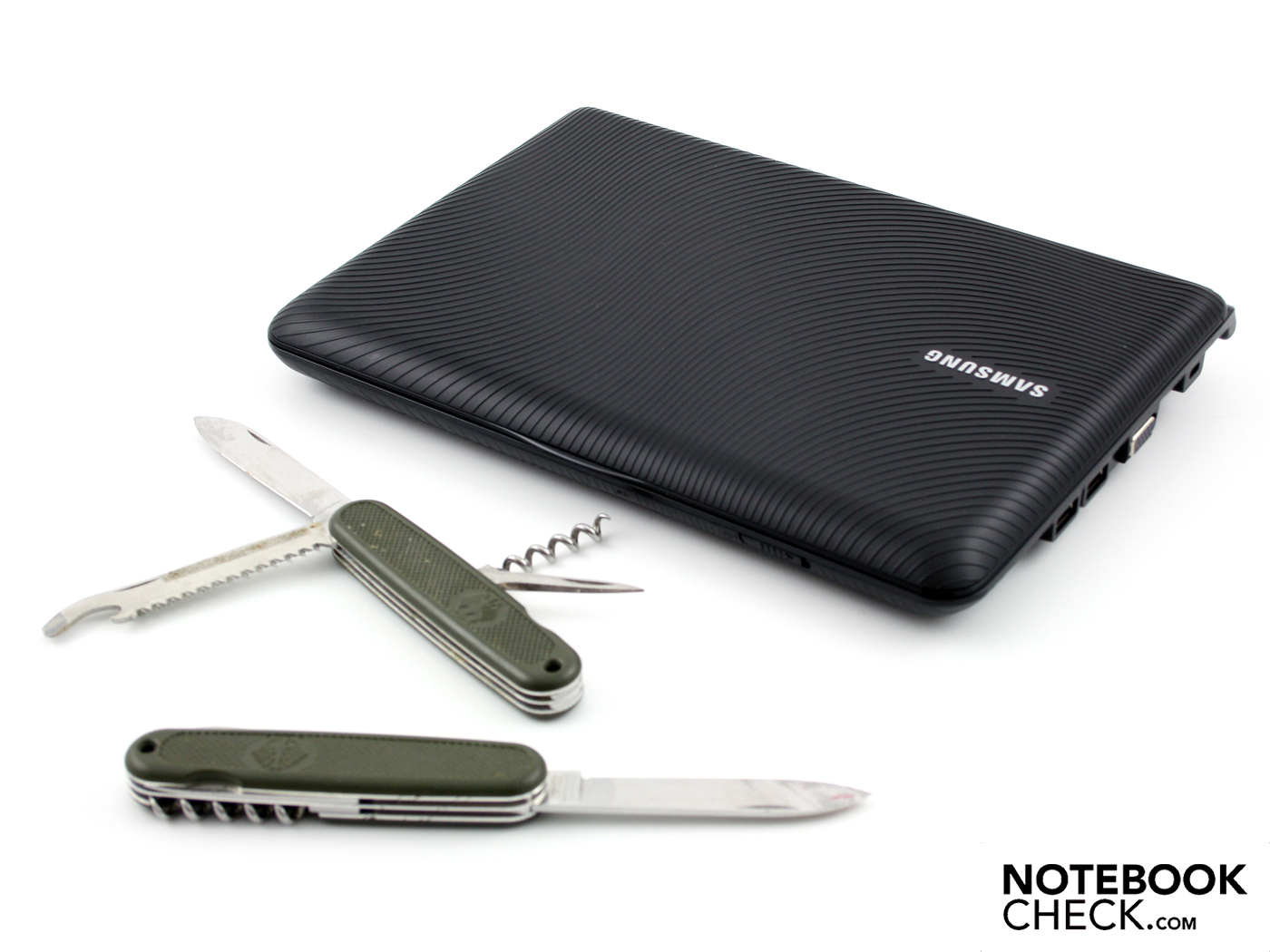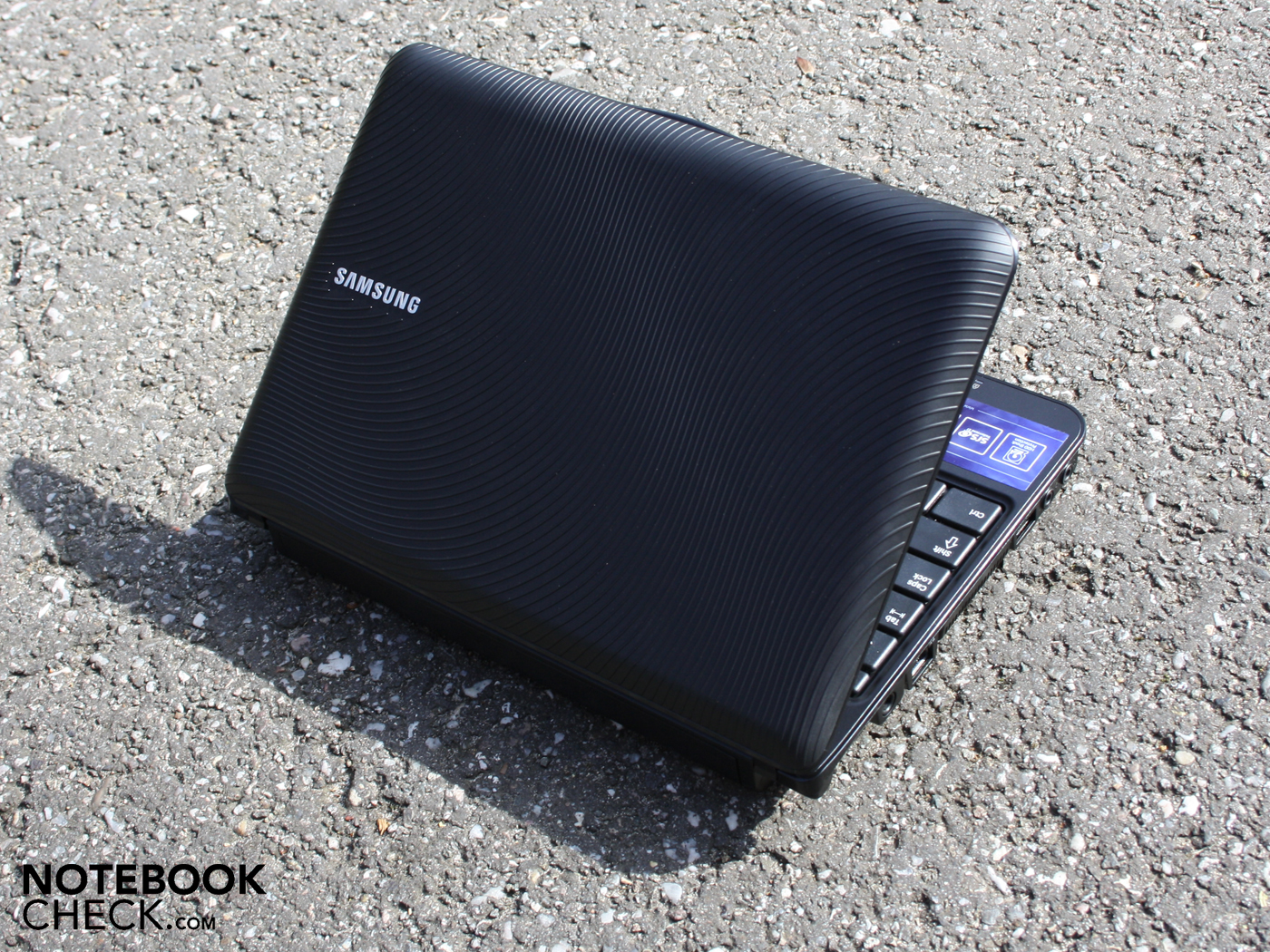 Der Samsung NB30 in der getesteten Version Pro Palm Touch ist ein Standard 10-Zoll Netbook mit einem resistiven Touch-Panel. Gegenüber Consumer-Netbooks bietet das Business-Gerät ein unempfindliches und sehr stabiles Gehäuse, das durch seine Oberflächenstruktur sehr gut in der Hand liegt.