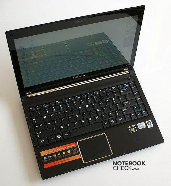 Samsung hat das Q320 mit einem 13.4-Zoll Bildschirm mit LED Hintergrundbeleuchtung ausgestattet. Dieses von Chi Mei Optoelectronics hergestellte Panel benutzt eine kinofreundliche Auflösung von 1366x768 Pixel im 16:9 Format. Gestaltet im Edge-To-Edge Design mit gerader Unterkante oberhalb der Scharniere kann das Panel einfach gereinigt werden.