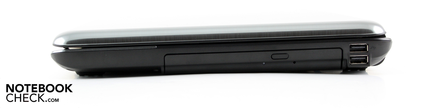 Die Platzierung der Steckplätze erscheint angemessen. Die zwei rechts angebrachten USB 2.0 Ports befinden sich ganz hinten. Die USB-Kabel für Peripherie (Drucker, Maus etc.) können nach hinten verlegt werden. Die sperrigen Kabel a la VGA, Strom und Ethernet auf der linken Seite, werden so weit hinten angesteckt, dass sie wohl selten stören werden.
