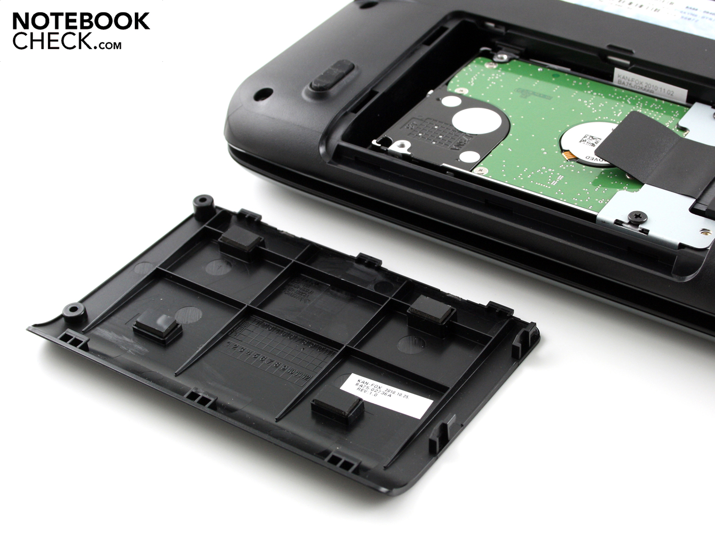 Die Handauflage ist im Wesentlichen stabil, kann aber auf der rechten Seite mit dem Finger eingedellt werden. Die Unterseite des Gehäuses ist ebenfalls nicht perfekt. Die Arbeitsspeicher-Klappe kann, wie der Bereich unter dem optischen Laufwerk, mit wenig Kraft eingedrückt werden.