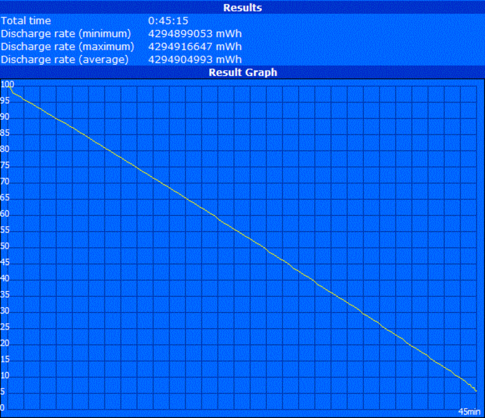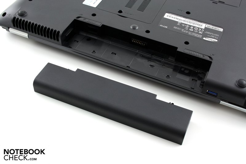 Eine hohe Mobilität ist dem Samsung RF710 eher fremd. Durch die Abwesenheit einer Grafikumschaltung und den zartbesaiteten sechs Zellen Lithium-Ionen-Akku (48Wh, 4400 mAh) sind die Laufzeiten ziemlich dürftig. Unter Last (Classic Test von Battery Eater) ging dem Notebook mit maximaler Helligkeit und deaktivierten Energiesparoptionen nach gerade einmal 45 Minuten die Puste aus. Kabelloses Filmvergnügen mag beim Einsatz von moderaten Energiesparoptionen ebenfalls kaum aufkommen, rund 75 Minuten sind für zahlreiche Blockbuster viel zu wenig.