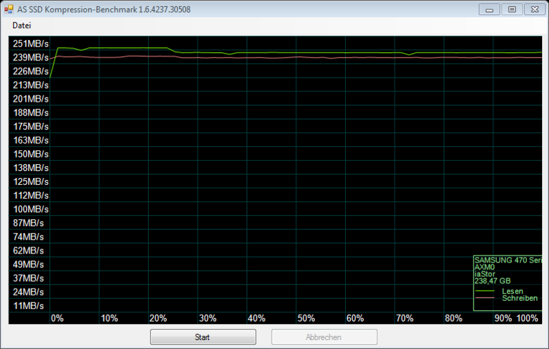 Alle sequentiellen Tests vereint, liegt das Samsung ziemlich genau zwischen der ADATA S510 (-31%), Intel 320 (-20%), OCZ Agility 3 (-29%) und den High End SSDs OCZ Vertex 3 (+29%) und Intel 510 (+37%).