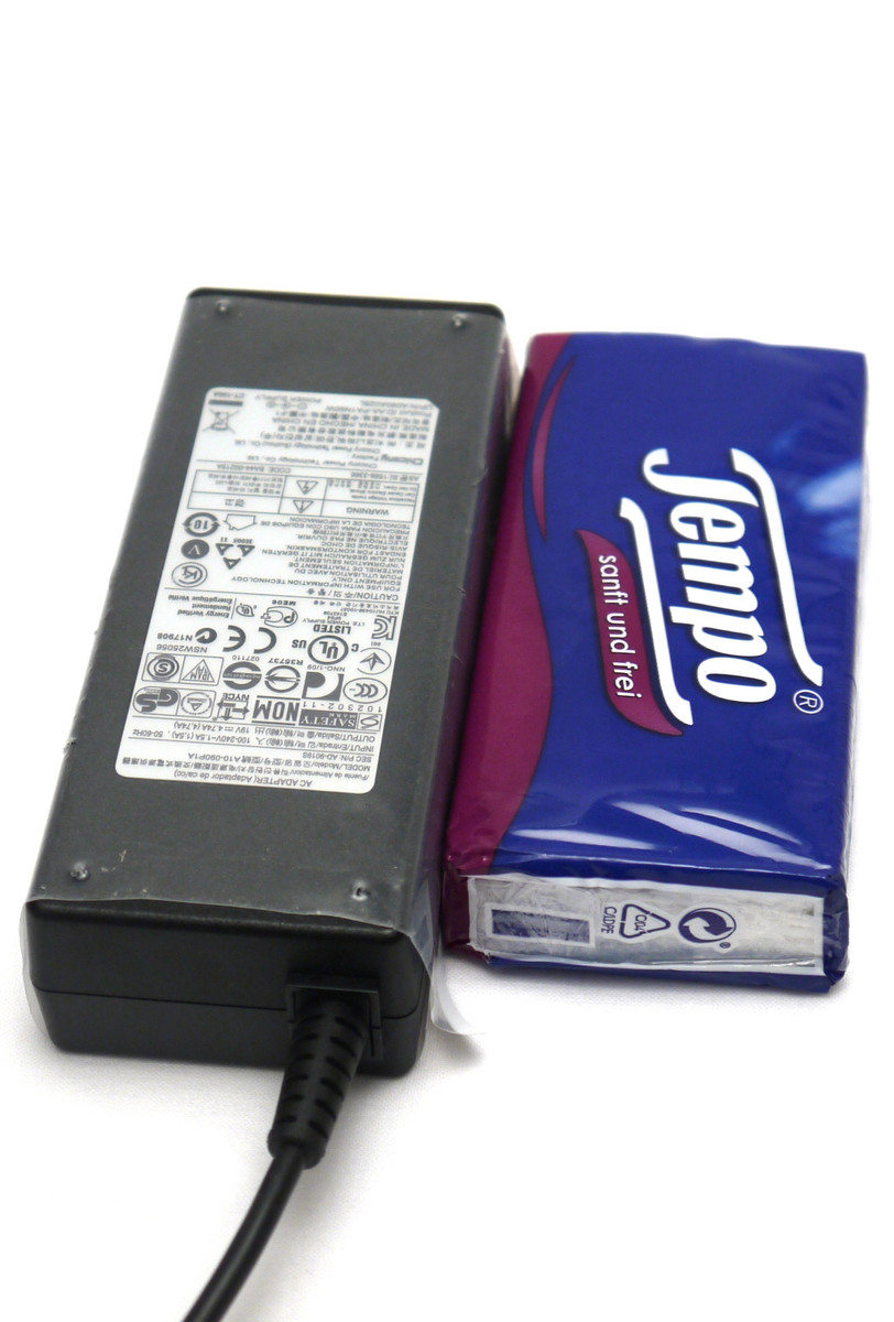 Das Samsung 350E7C geht für ein 17-Zoll-Notebook erstaunlich sparsam zu Werke. Im Idle-Betrieb messen wir 8 bis 15,9 Watt. Das AMD Pendant 355E7C genehmigt sich mit 11,6-17,1 Watt einiges mehr. Das Dell Inspiron 17R SE zieht hier in etwa gleich (8,8-15,9 Watt). Beim 3DMark 06 Benchmark benötigt das Samsung 350E7C mit 41 Watt dann aber nur noch knapp die Hälfte gegenüber dem 17R SE, liegt bei der Performance im selbigen allerdings auch 48 % zurück. Auch unter Volllast zeigt sich das Samsung Notebook mit knapp 50 Watt als äußerst genügsam. Selbst das Dell Inspirion 17R mit ULV-Prozessor kann da nicht mithalten. Das Netzteil ist mit 90 Watt somit mehr als ausreichend dimensioniert.