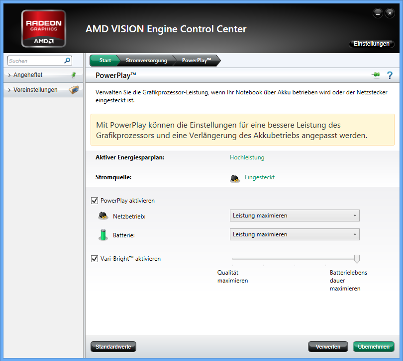 Ein Tipp: Wer sich der vorinstallierten Samsung Tools entledigen möchte, sollte das gesamte System auf den Auslieferungszustand zurücksetzen. Mit Hilfe des auch nach der Zurücksetzung vorinstallierten Tools SW Update können die benötigten Treiber und die gewünschten Programme (z.B. PowerDVD) anschließend individuell installiert werden.