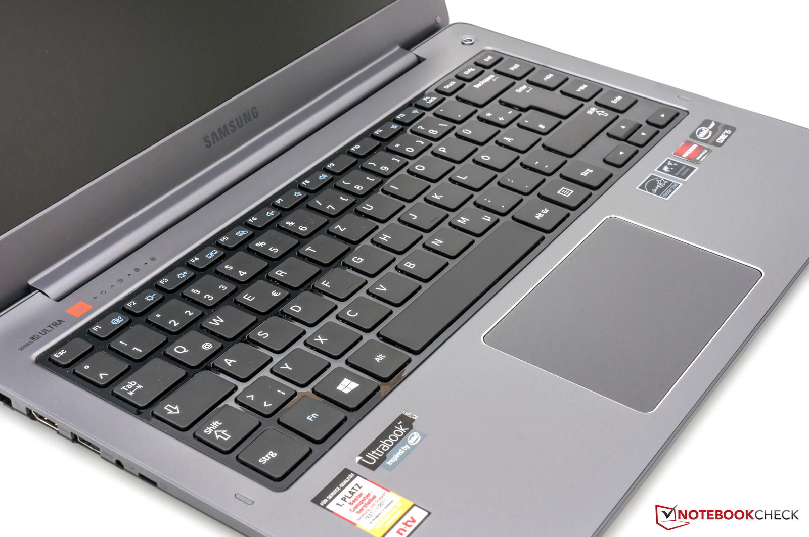 Für die Texteingabe setzt Samsung weiterhin auf ein Chiclet-Keyboard, das wir bereits vom 530U4C kennen. Das Layout ist großzügig gehalten, wobei am rechten Ende eine weitere Tastenspalte hinzugefügt wurde. Aus Sicht der Ergonomie ist diese vor allem am Anfang hinderlich. Unser Redakteur könnte darauf verzichten. Positiv sind die leicht gummierten Oberflächen der Tasten und die geringe Geräuschentwicklung. Der Druckpunkt ist klar zu erkennen. Ein angenehmes Tippgefühl entsteht. Abseits dieser überzeugenden Vorstellung würden wir uns für die Zukunft eine Tastaturhintergrundbeleuchtung wünschen.