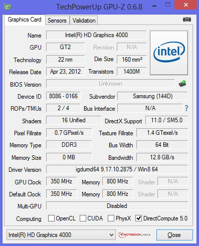 Neben der integrierten GMA 4000 HD Grafikeinheit verfügt das Samsung-Ultrabook über eine dedizierte GPU. Die AMD Radeon HD 8750M arbeitet mit einem Kerntakt von 825 MHz, basiert auf der GCN-Architektur (28 Nanometer), bietet 2 GB Speicher und richtet sich an Casual Gamer, für die die integrierte Grafikeinheit zu schwachbrüstig ist. Die GPU unterstützt sowohl DirectX 11.1, Shader 5.0 und die automatische Grafikumschaltung. Bei einfacheren Aufgaben greift so automatisch die GPU des Prozessors ein. Detaillierte Informationen zu der 8750M finden Sie in unserem Technik-Artikel zu dieser Grafikeinheit.