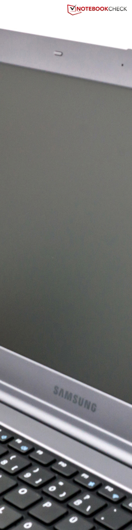 Für die Anzeige des Inhalts nutzt das Notebook eine matte 14-Zoll-Anzeige mit einer Diagonale von 35,56 Zentimetern. Auf dieser Fläche können nativ 1.366 x 768 Pixel im 16:9 Format darstellt werden. Das Panel vom Typ AUO313C wird zugeliefert und nicht von Samsung selbst hergestellt. Dabei handelt es sich um ein TN-Panel mit LED-Hintergrundbeleuchtung. Eine hochauflösende Alternative mit 1.920 x 1.080 Pixel (Full-HD, 1080p) bietet Samsung für diesen Preis natürlich nicht an. Über den HDMI-Ausgang können externe Anzeigen oder Fernseher aber ohne Verlust angesteuert werden. Über diesen Anschluss wird gleichzeitig auch das Audiosignal übertragen.