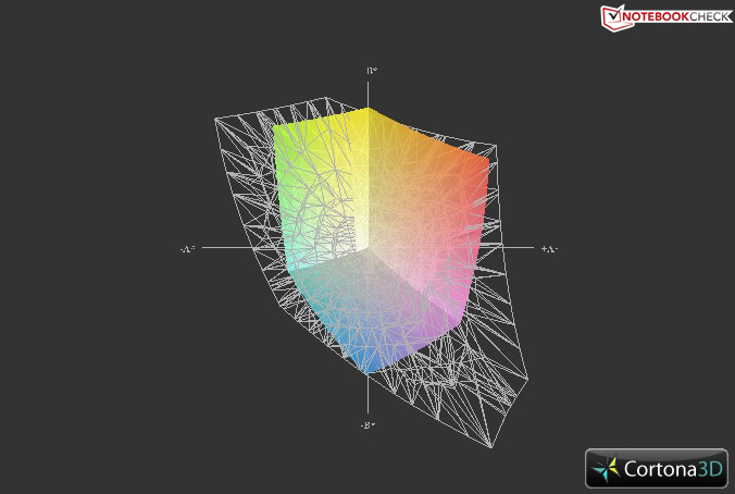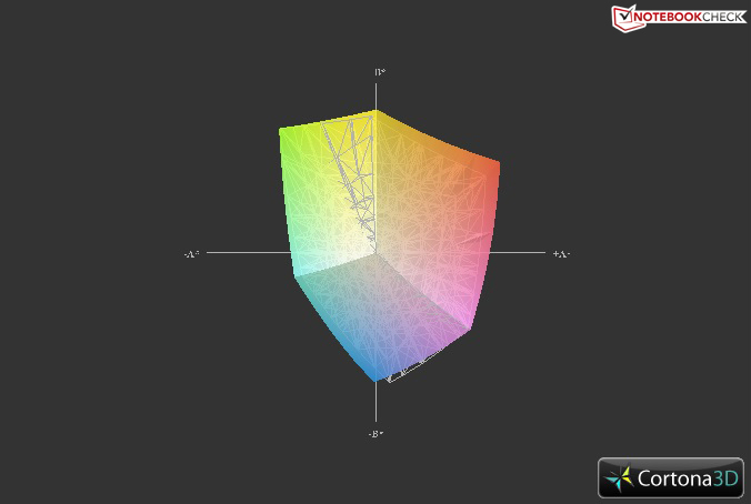 Die weiteren Messwerte sind in Ordnung, bestätigen aber den durchschnittlichen Eindruck. Der Schwarzwert fällt mit 0,39 cd/m² gering aus. Aufgrund der schwachen LED-Beleuchtung bleibt das Kontrastverhältnis mit 485:1 unter den seinen Möglichkeiten. Der subjektive Eindruck bestätigt die Werte. Des Weiteren wirken die Farben vergleichsweise blass. Die matte Oberfläche trägt ihren Teil dazu bei. Für den professionellen Nutzer haben wir abschließend noch die Farbraumabdeckung überprüft. Die sRGB-Referenz kann nicht annähernd bedient werden, wodurch dieses Ultrabook nicht das richtige Tool für Fotografen ist. Der Vergleich zu ähnlichen Konfigurationen zeigt meist geringe Unterschiede.