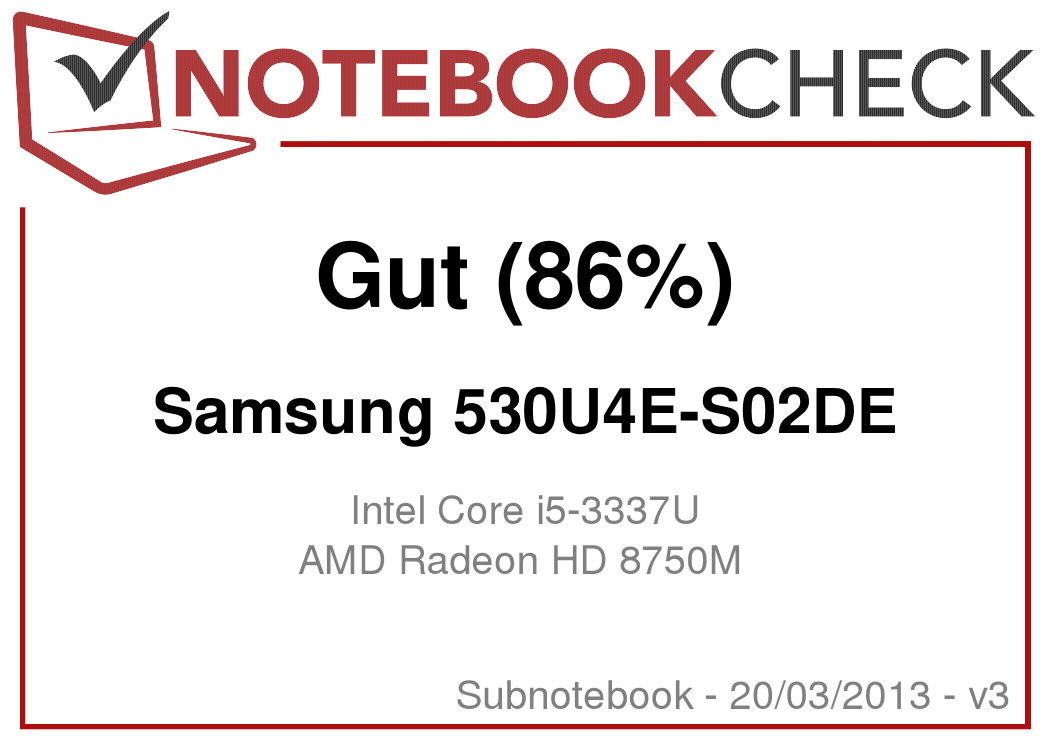 Mit dem Ultrabook 530U4E-S02DE der Serie 5 bietet Samsung ein durchdachtes Gerät an, das sich positiv vom Vorgänger abhebt. Das neue Design gefällt auf den ersten Blick. Die Verarbeitung und Stabilität des Chassis können sich ebenfalls sehen lassen. Die Schnittstellenausstattung ist in Ordnung, auch wenn sie umfangreicher sein dürfte. Die Positionierung der Ports ist gelungen. Leider gibt es nur noch eine USB-3.0-Schnittstelle, und der VGA-Ausgang lässt sich nur mittels Adapter nutzen. Die einfache Erweiterbarkeit des Arbeitsspeichers, eine aktuelle Kommunikationsausstattung, die überzeugenden Eingabegeräte und die wohlklingenden Stereo-Speaker sind weitere Pluspunkte für das neue Gerät.