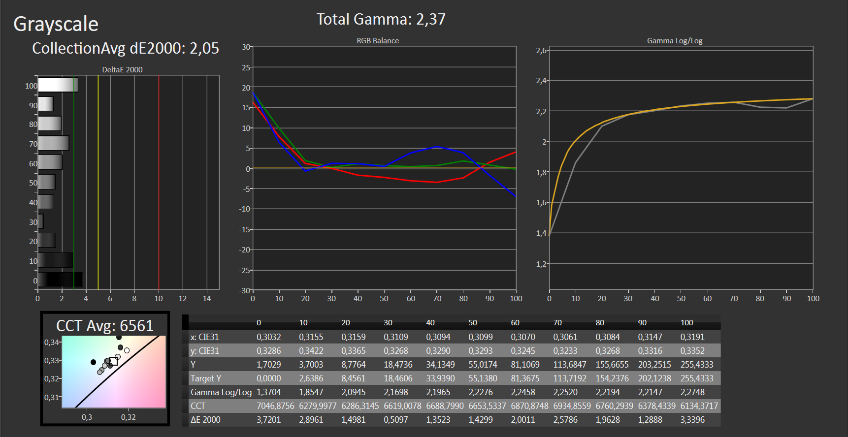 ΔE Greyscale Calman: 8.65 | ∀{0.09-98 Ø5}