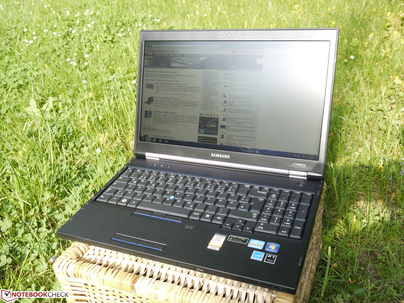 Für Verbindungen per Funk stehen Bluetooth 4.0 und Intels Centrino Advanced-N 6235 WLAN-Modul zur Verfügung. Die WLAN-Lösung von Intel kann theoretisch bis zu 300 Mbit/s übertragen, verfügt über 2 Antennen und deckt sowohl das 2,4-GHz-Band als auch das 5-GHz-Band ab. Im Praxistest haben wir eine übliche Verbindungsqualität festgestellt, die eine etwas weitreichendere und stabilere Verbindung ermöglicht als das Atheros Modul des Asus N76VZ. Als weiteres Feature nutzt Samsung auch Intels WiDi-Standard, der es ermöglicht, externe Displays per Funk anzusteuern. Getestet haben wir das nicht. Ein WWAN-Modul ist im Testgerät nicht integriert und scheint auch nicht vorgesehen zu sein. Ein passender Steckplatz oder überhaupt ein passender Ort dafür ist jedenfalls nicht ersichtlich. Kompletiert wird die Kommunikationsausstattung durch eine 1,3-MP-Webcam, die für Videokonferenzen ausreicht, und einen Gigabit-LAN-Anschluss.