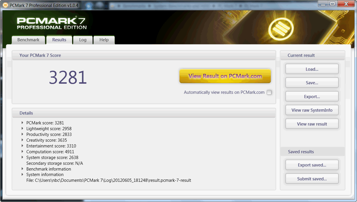 | PCMark 7 Score | 3281 Punkte | |