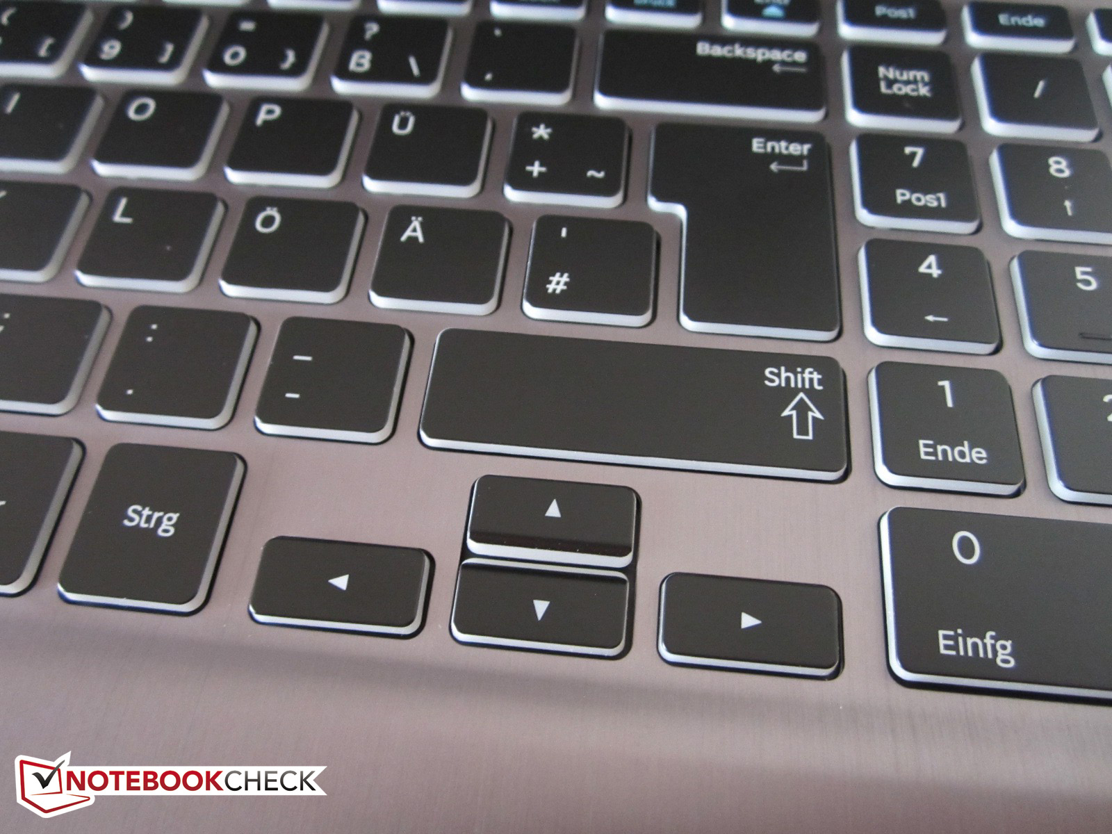 An der Tastengröße (durchschnittlich 15 x 15 Millimeter) gibt es ebenfalls nichts zu bemängeln. Lediglich die Pfeiltasten und die F-Reihe hätten etwas mehr Höhe vertragen. Apropos F-Reihe: Die notebooktypischen Sonderfunktionen, die wie üblich per Fn-Taste aktiviert werden, sind intelligent aneinander gereiht. So entdeckt der Nutzer nicht nur Regler für die Displayhelligkeit und die Lautstärke, sondern auch für die Tastaturbeleuchtung. Dazu kommen Schaltflächen für den Leisemodus, das Touchpad, das Funkmodul und das Slot-In-Laufwerk.