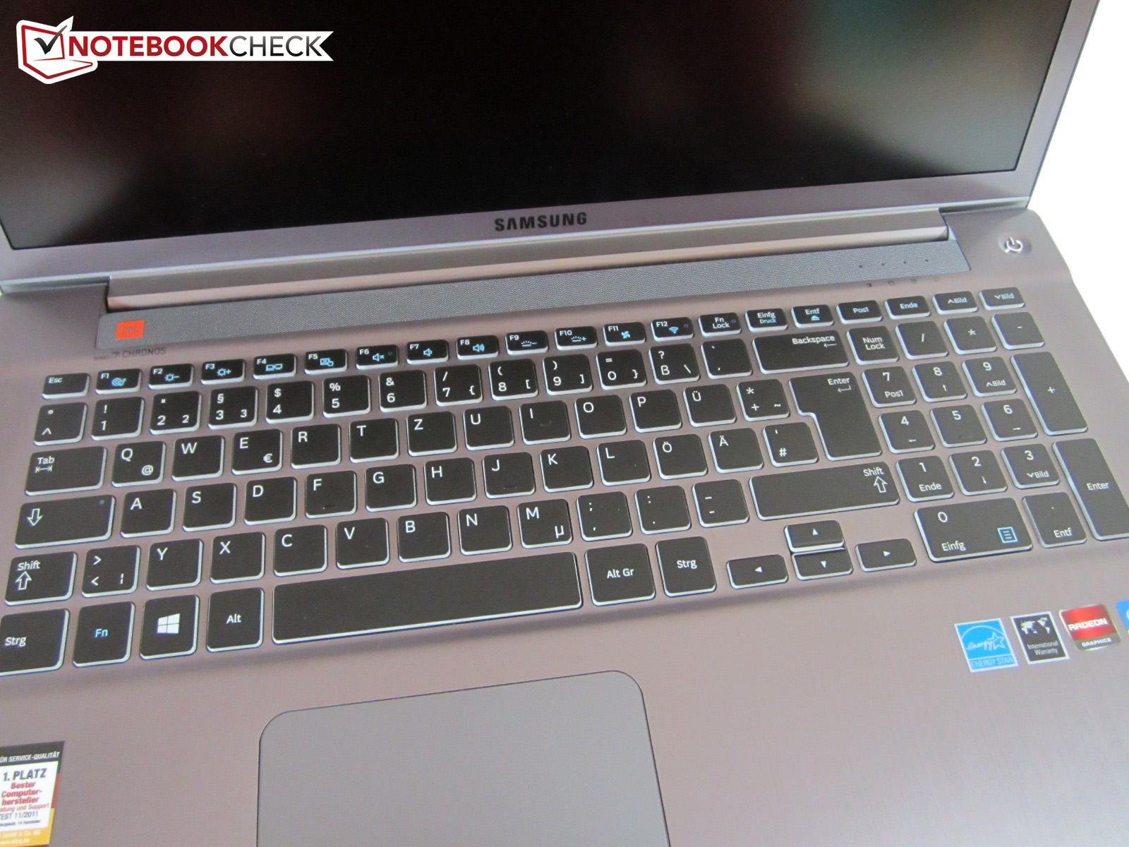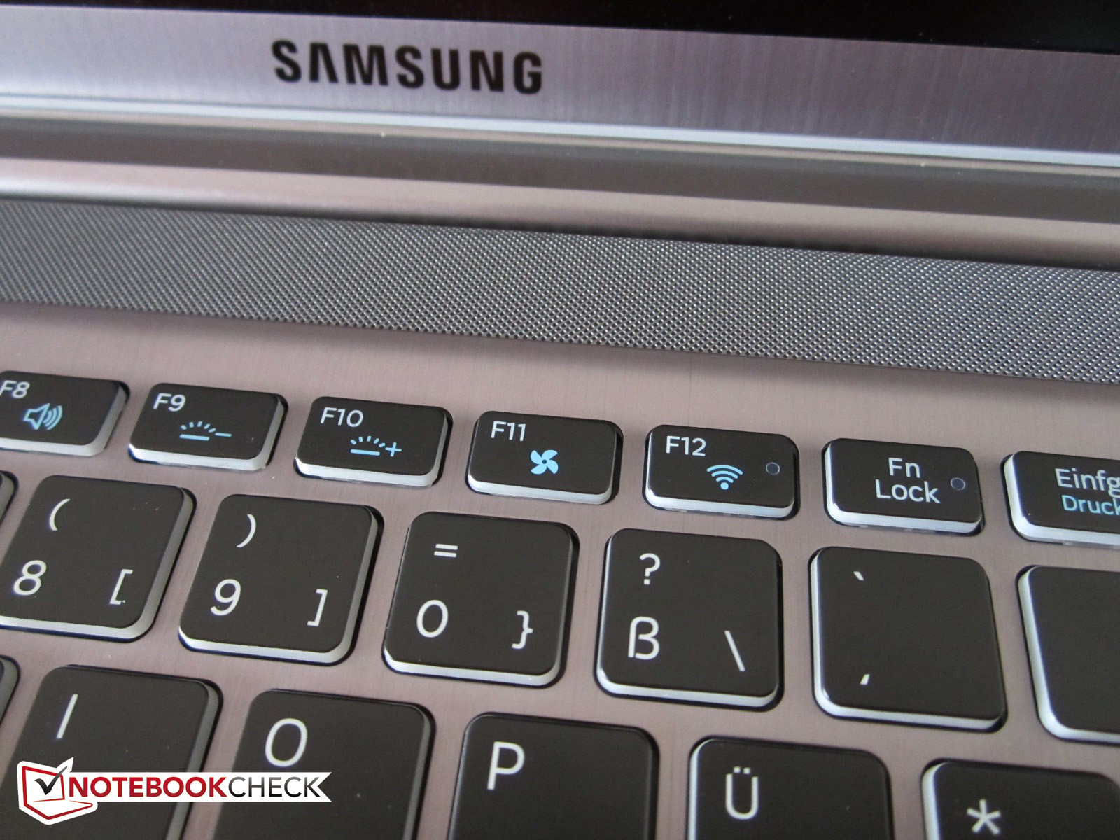 Bei der weiß beleuchteten und ein paar Millimeter abgesenkten Chiclet-Tastatur schöpft Samsung aus dem Vollen. Dank der großzügigen Handballenauflage, dem angenehmen Tippverhalten (guter Druckpunkt respektive Anschlag) und der ordentlichen Akustik werden auch Vielschreiber mit der Eingabe zufrieden sein.