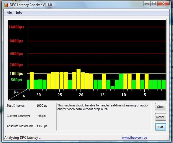 Zu unseren Leistungstests gehört auch eine Überprüfung der DPC Latenzen des Notebooks. Sind diese Latenzen zu hoch, kann es zu Problemen in der Kommunikation mit externen Geräten kommen. Dies ist besonders beim Streaming von Audio- oder Videodaten ärgerlich, da es zu Bildfehlern oder Tonaussetzern kommen kann. Das X520 zeigt sich hier allerdings zuverlässig und lässt keine zu hohen Latenzen erkennen.